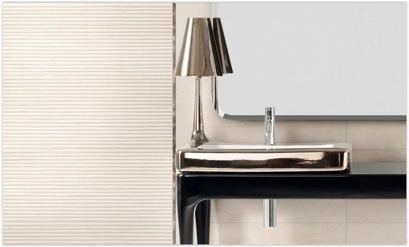 Carrelage beige décoré, idéal pour une utilisation comme carrelage mural de salle de bain. Et c'est que malgré le relief qu'a le carreau, sa texture est très lisse et facile à nettoyer. Le Dynamo aux tons chauds est une excellente option à associer avec des couleurs claires comme le blanc, le sable et le beige. Il a un style contemporain qui mélange le ciment et le design en pierre.