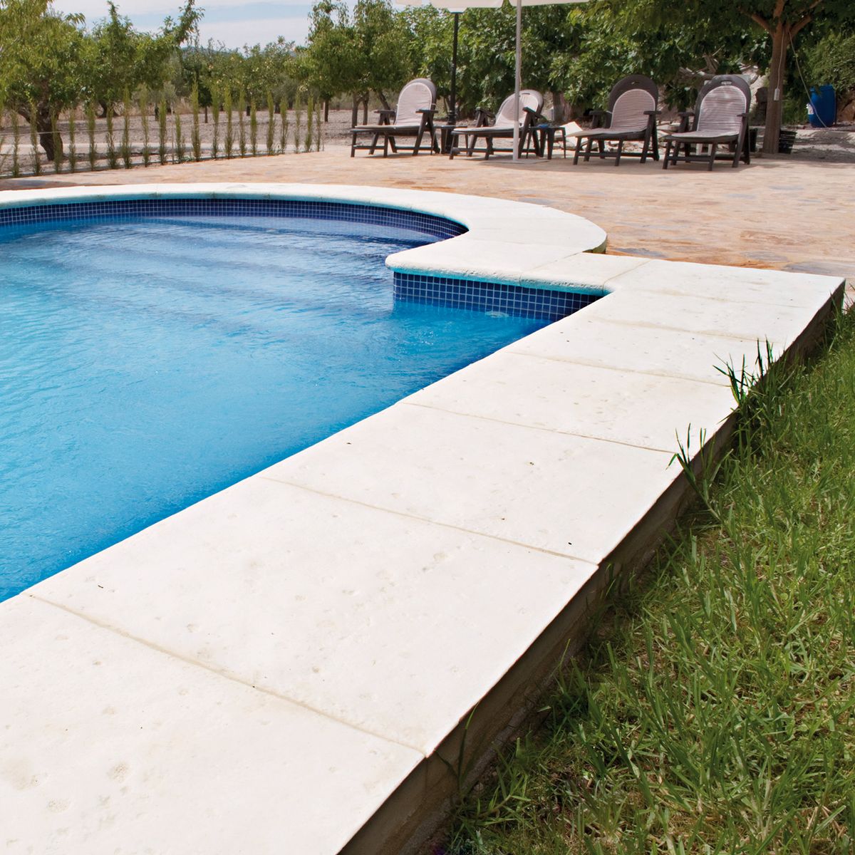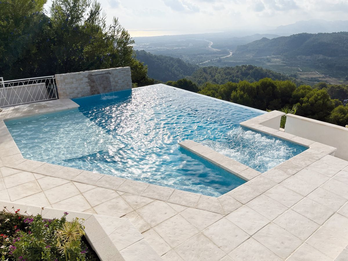 Nous recommandons de combiner la garniture de piscine Palacio avec les carreaux Maro/Palacio ou Nerja.